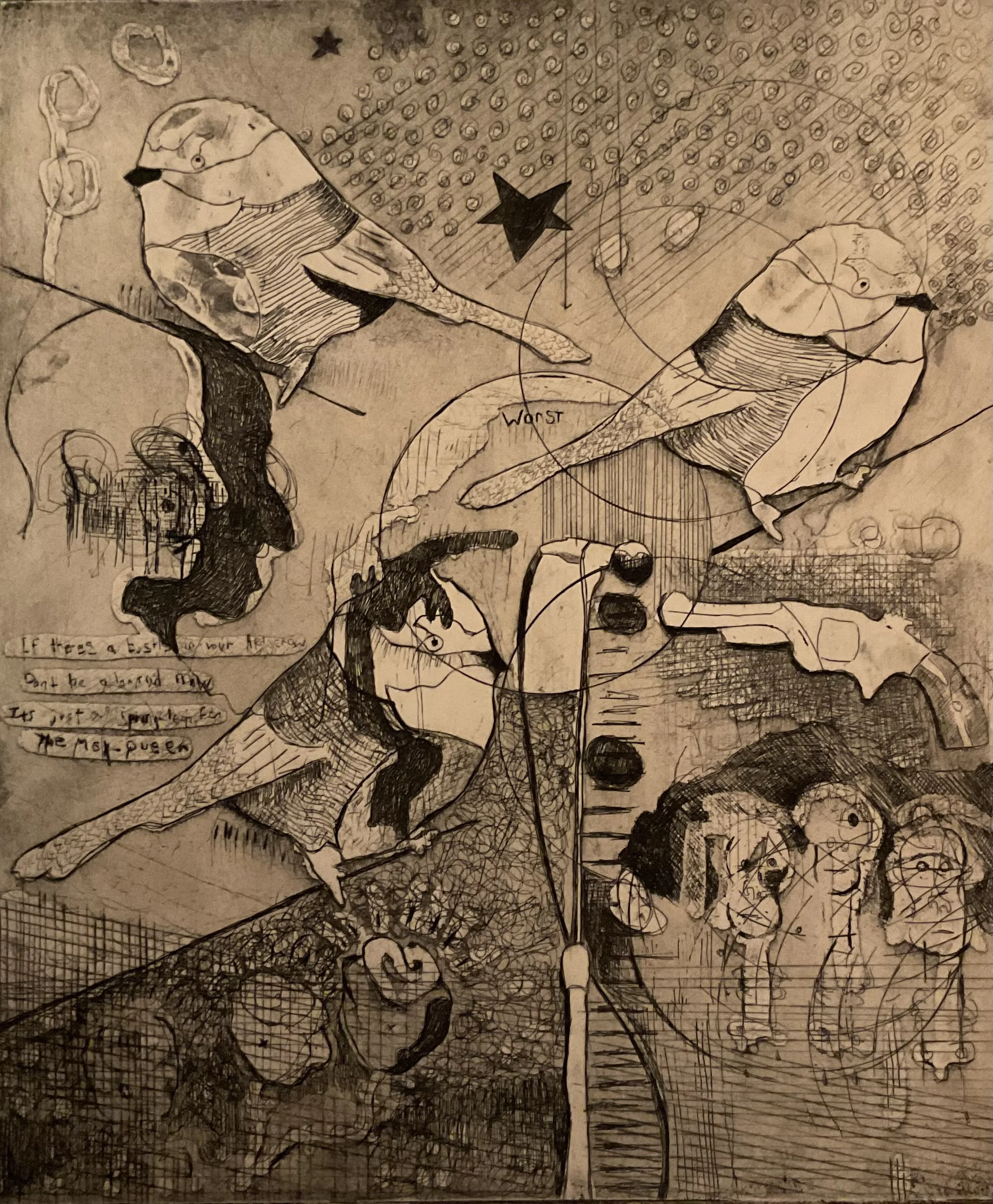 I am an artist living and working in western Massachusetts. I graduated from Greenfield Community College and the University of Massachusetts-Amherst. I earned an A.S. in graphic design and an B.F.A. in painting/print making. My interest in the creative arts is lifelong and heartfelt.